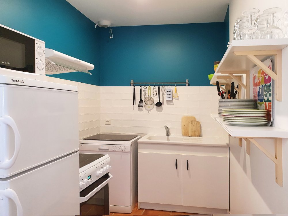 Tout le nécessaire à disposition : lave-vaisselle, réfrigérateur, four, micro-ondes, cafetière, bouilloire...