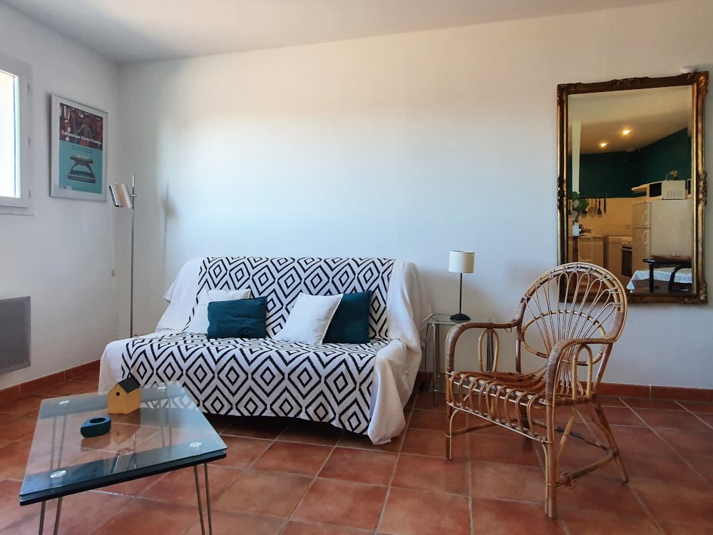 Un salon de 25 m² avec canapé-lit, rangements et espace repas pour des moments conviviaux.